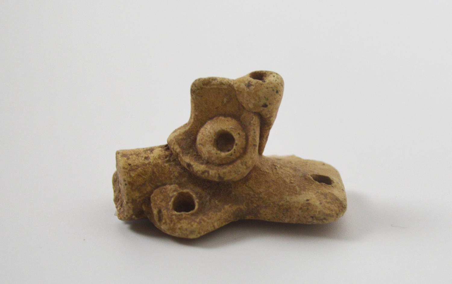 MATERIA E TECNICA: argilla depurata rosata, ingubbiatura biancastra, modellata a mano