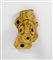 Testa femminile stilizzata stante in posizione frontale; il volto è dominato dal grande naso che termina con un cerchiello applicato come gli occhi.