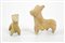 Due statuette di capridi stilizzati con corpo cilindrico e zampe coniche, testa eretta e muso allungato. (2)