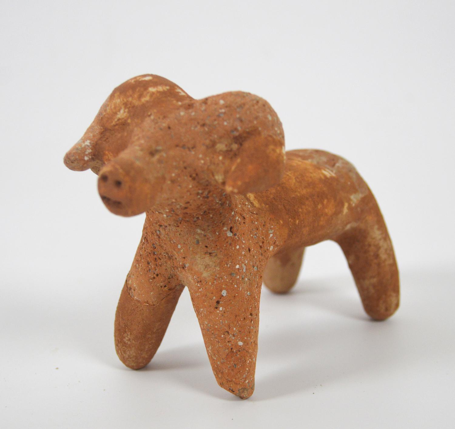 MATERIA E TECNICA: argilla depurata rossiccia, ingubbiatura biancastra, modellato a mano