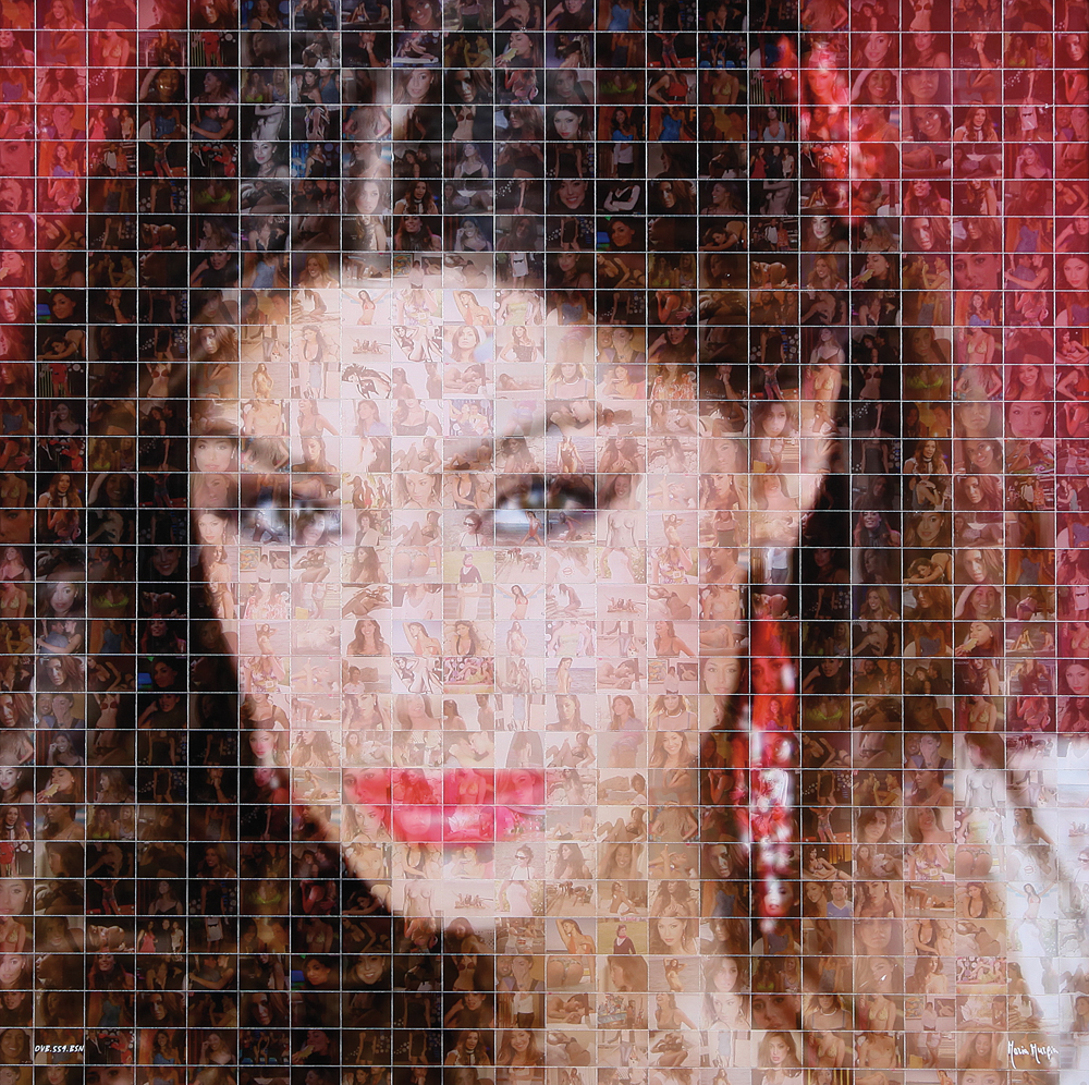 MARIA MURGIA Ossi (SS) 1935 Omaggio a Belen Rodriguez, 2011 fotomosaico digitale cm. 60x60, esemplare unico, firma in basso a destra, archivio in basso a sinistra, opera registrata presso l'Archivio Opere Digitali Maria Murgia come da dichiarazione dell'artista su foto.