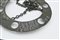 Lampadario formata da un grande elemento in lamina di bronzo nel quale sono ricavati sei alloggi per le coppe in vetro, oggi mancanti e tre catene che si riuniscono in un anello per la sospensione.