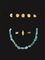 Collana in faience azzurra formata da nove scarabei con parte inferiore incisa con geroglifici e tredici vaghi di forme diverse; due occhi udjat ed una trachea sema in lamina d'oro; cinque elementi in lamina d'oro pertinenti alla decorazione di un abito o di un'armilla, due modellati a elementi vegetali e tre a volti umani stilizzati (9)