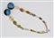 Collana composta da vaghi di forma diversa in cristallo di rocca, corniola, calcedonio, topazio e ametista con due grandi sfere in faience a spicchi turchesi e neri, caratteristici del Nuovo Regno.