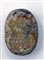Scarabeo-sigillo raffigurante l'animale in modo stilizzato, nella parte inferiore due divinità femminili gradienti a sinistra ed un ureo.