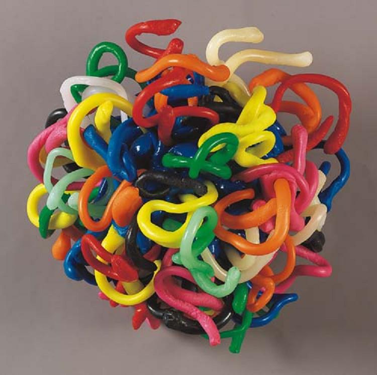 ALEX ANGI Cannes (Francia) 25/11/1965 Plastic virus, 2006 plastiche colorate e assemblate cm. 46x28, titolo, firma e anno al retro, dichiarazione d'autenticità dell'artista su foto, pubblicato sul catalogo Cracking Art Revolution a cura di Piero Adorno, Claude Lorent e Francesco Santaniello, edizioni Skira (MI), pagina 245.