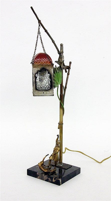 Lampada da tavolo Jugendstil - circa 1900 - in metallo e altri materiali - base in marmo h.cm.