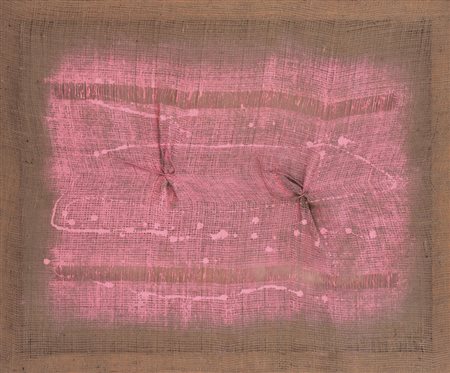 SALVATORE EMBLEMA Terzigno (Na) 25/04/1929 - Terzigno (Na) 02/02/2006 Senza titolo, 2003 terra colorata su tela di juta cm. 90x110, doppia firma e anno al retro, dichiarazione d'autenticità dell'artista su foto, certificato della Telemarket allegato.