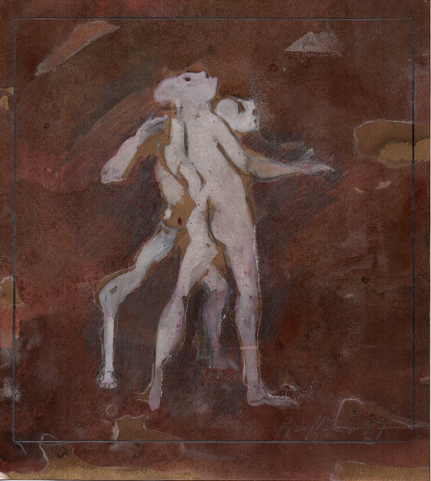 Giancarlo Braghieri - Figure 1989 - Tecnica mista su cartoncino cm.23,5x21 - firmata e datata in basso a destra