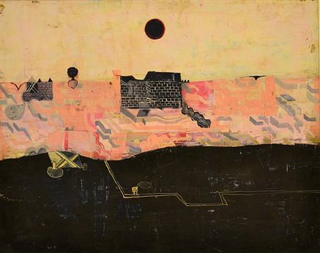Gustavo Foppiani - Un castello ad Otranto 1970 - Tempera su tavola cm.40x50 - firmato e datato in alto a destra, Firmato, datato e intitolato al retro - Etichetta Galleria Gian Ferrari - Milano, con cornice