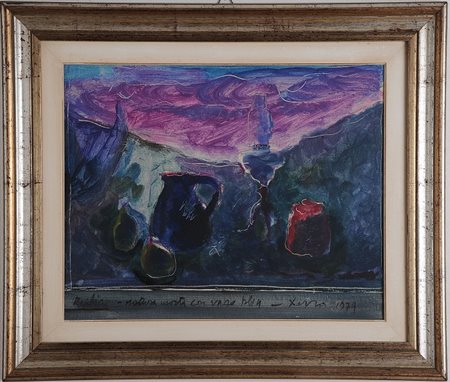 William Xerra - Natura morta con vaso blu 1974 - Olio su tela cm.40x50 -...