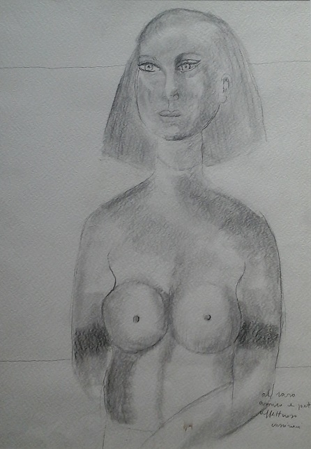 Bruno Cassinari - Busto femminile - Matita su carta ruvida cm.70x50 - firmato e dedicato in basso a destra, con cornice