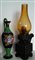 Un versatoio in ceramica decorato a mano firmato Gialletti - Deruta h.cm.26 ed un lume in legno intagliato h.cm.34