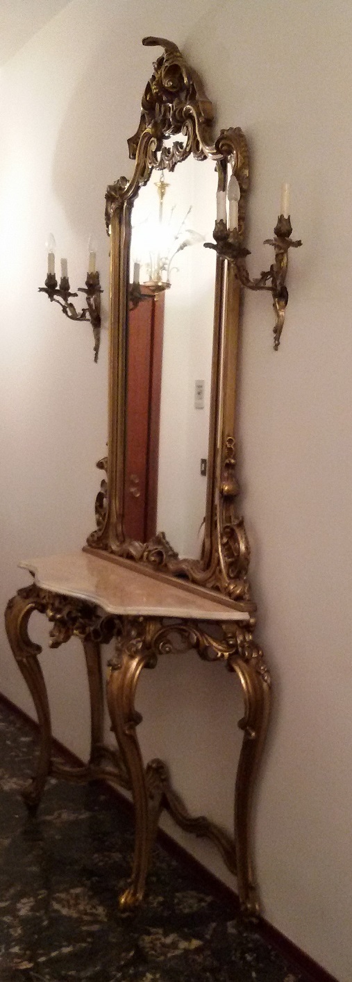 Console e specchiera in legno intagliato e dorato - piano in marmo - misure...