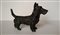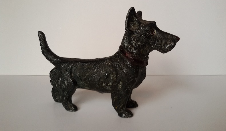 Scultura raffigurante cane in metallo dipinto cm.15x4x11, lievi difetti