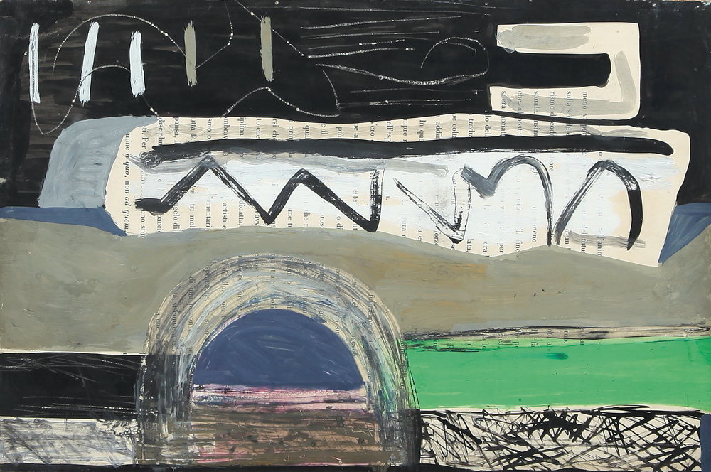 ROBERTO CRIPPA Milano 07/05/1921 - Bresso (Mi) 19/03/1972  Composizione astratta, 1948 tecnica mista su cartoncino applicato su tela cm. 33x50, firma, anno e timbri della Galleria Protagonista dell'Arte (Roma) al retro, opera registrata presso l'Archivio dell'Associazione Nazionale Gallerie d'Arte Moderna (MI) come da dichiarazione su foto.