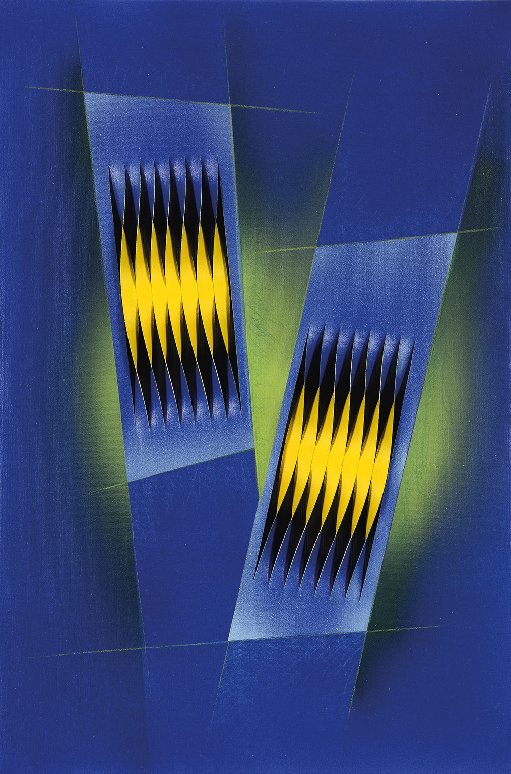 Alberto Biasi, "Senza titolo", 2000, acrilico su tela, 45x30 cm, firmato sul retro