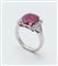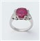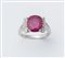 ANELLO CON RUBINO E DIAMANTI in platino, centrato da grande rubino ovale...