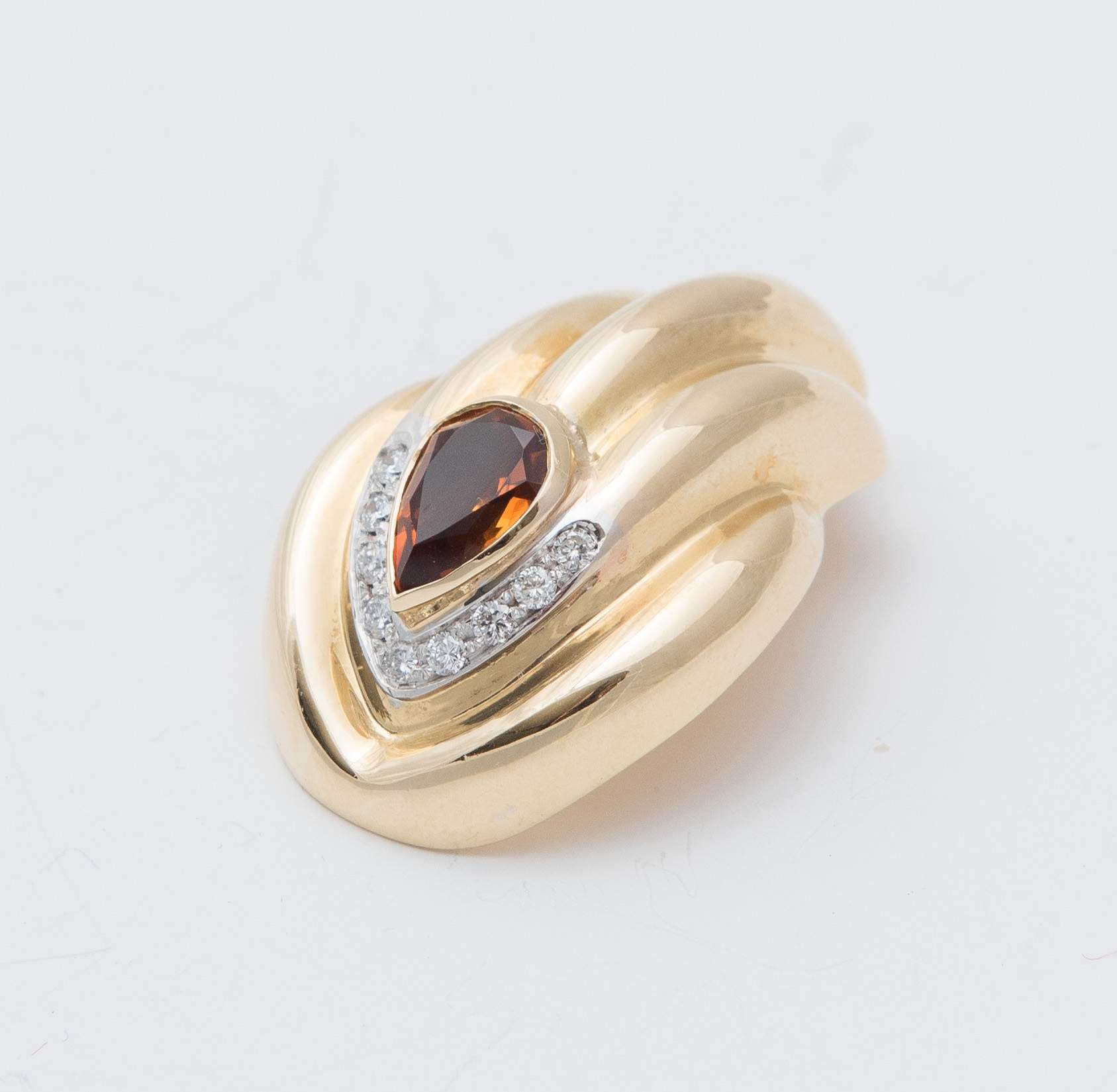 PENDENTE IN ORO CON QUARZO E DIAMANTI in oro giallo 18K, con quarzo citrino a forma di goccia e piccoli diamanti. Peso complessivo: 7,90 grammi.