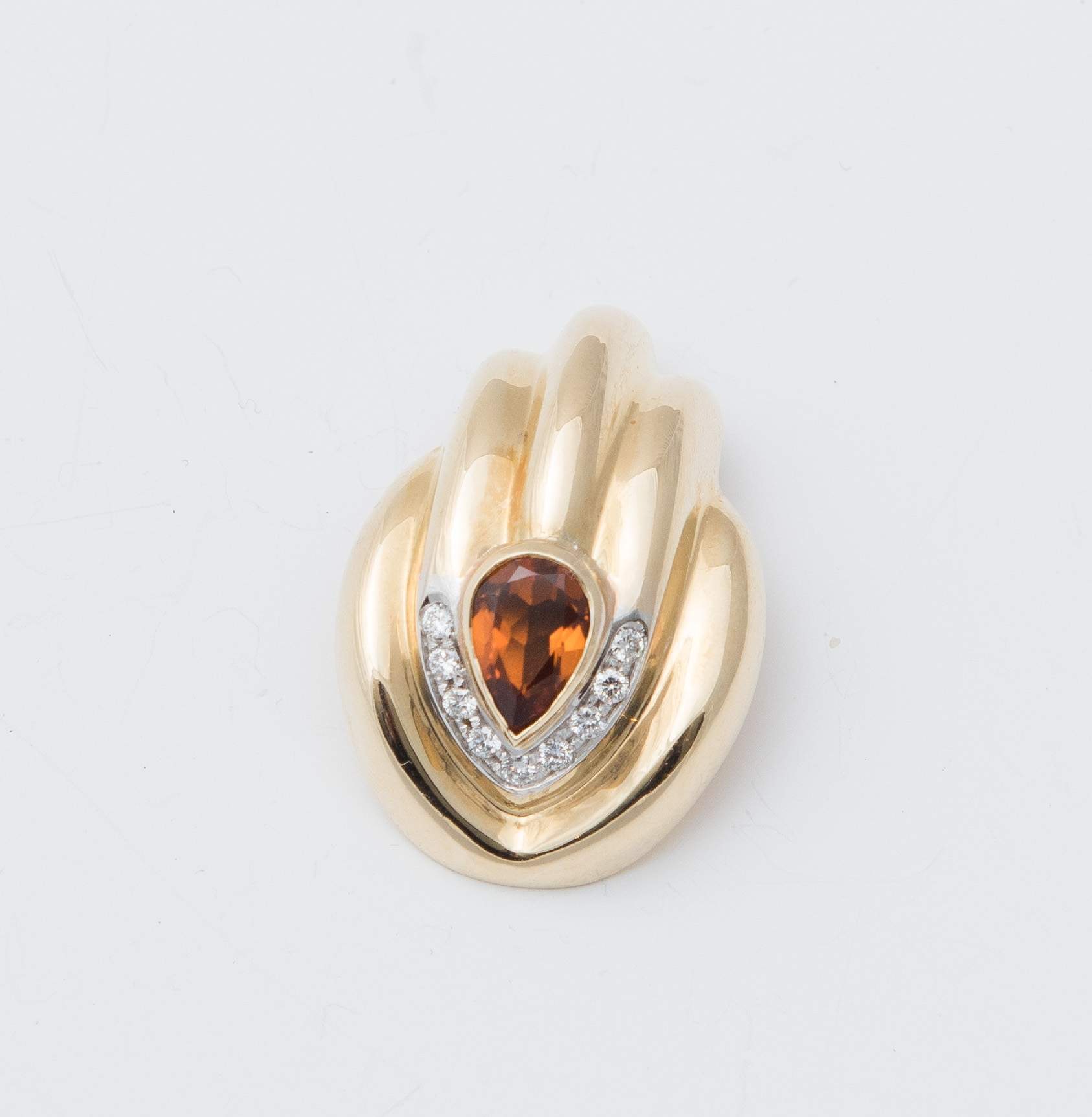 PENDENTE IN ORO CON QUARZO E DIAMANTI in oro giallo 18K, con quarzo citrino a...