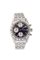Cassa in acciaio con lunetta tachimetrica incisa. Quadrante “Panda” antracite con contatori grigi a contrasto. Indicazione centrale dei minuti e dei secondi al 6, delle 12 ore al 9 dei secondi continui alle 12, delle 24 ore ed al 3. Datario al 3. Bracciale in acciaio integrato a maglie con chiusura a scomparsa.