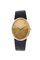 Cassa in oro di forma ovale con fondello a pressione. Quadrante color oro con finitura soleil ed
