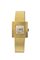 Cassa in oro di forma con fondello a pressione e lavorazione della lunetta clous de Paris. Quadrante argento con finitura soleil ed indici geometrici applicati. Bracciale in oro integrato con finitura maglia Milano e chiusura a scomparsa