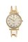 Cassa placcata con fondello in acciaio. Quadrante argento con lavorazione soleil, indici geometrici applicati ed indicazione centrale dei secondi continui. Bracciale rigido, in oro giallo, integrato con chiusura a scomparsa.