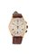 Cassa in oro rosa, con fondello a pressione e tasti quadri della cronografia. Quadrante argento con indici geometrici e numeri arabi incisi. Scala tachimetrica esterna e minuteria serigrafate . Indicazione dei secondi continui ad ore 9 e dei 45 minuti al 3.