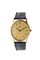 Cassa in oro giallo con fondello a pressione. Quadrante champagne con indici geometrici applicati, lancette a bastoncino in oro.