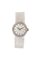 Cassa in oro bianco con fondello a pressione; lunetta in diamanti taglio brillante; quadrante argento con indici applicati; bracciale integrato in oro bianco lavorato a tessuto, con chiusura a scomparsa