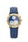Cassa in oro giallo, godronata con fondello a pressione; lunetta incisa con numeri romani Quadrante blu con contatori bianchi a contrasto,