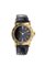 Cassa in oro giallo; lunetta incisa con il nome della maison: quadrante antracite con indici geometrici e numeri arabi alle 12 e al 6.