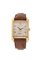 Cassa di forma in oro rosa, lavorata a volute con tipico vetro curvato. Quadrante panna con