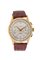 Cassa in oro giallo con doppio fondello a pressione. Quadrante argento con indici geometrici applicati e scale tachimetrica e telemetrica serigrafate. Indicazione dei secondi continui ad ore 9 e dei 30 minuti ad ore 3.