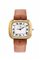 Cassa in oro giallo, di forma, lavorata a scalino; fondello a pressione. Quadrante bianco con numeri romani serigrafati e minuteria a binario