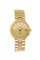 Cassa in oro giallo con fondello a pressione. Quadrante champagne con indici geometrici applicati, minuteria radiale aperta ed indicazione della data ad ore 3. Bracciale a maglie in oro integrato.
