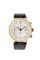 Cassa in oro giallo con fondello a cerniera e tasti quadri della cronografia. Il tasto ad ore 2 avvia e resetta la cronografia, il tasto ad ore 4 ferma la cronografia. Quadrante argento con indici geometrici serigrafati come la scala tachimetrica di colore azzurro. Indicazione dei secondi continui al 9 e dei 30 minuti alle 3.
