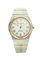 Cassa in acciaio con lunetta dorata di forma ottagonale. Quadrante bianco con numeri romani