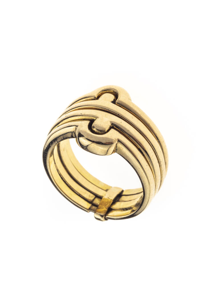 Anello in oro giallo, firmato "Bulgari", composto da quattro fasce mobili, unite a creare un motivo geometrico