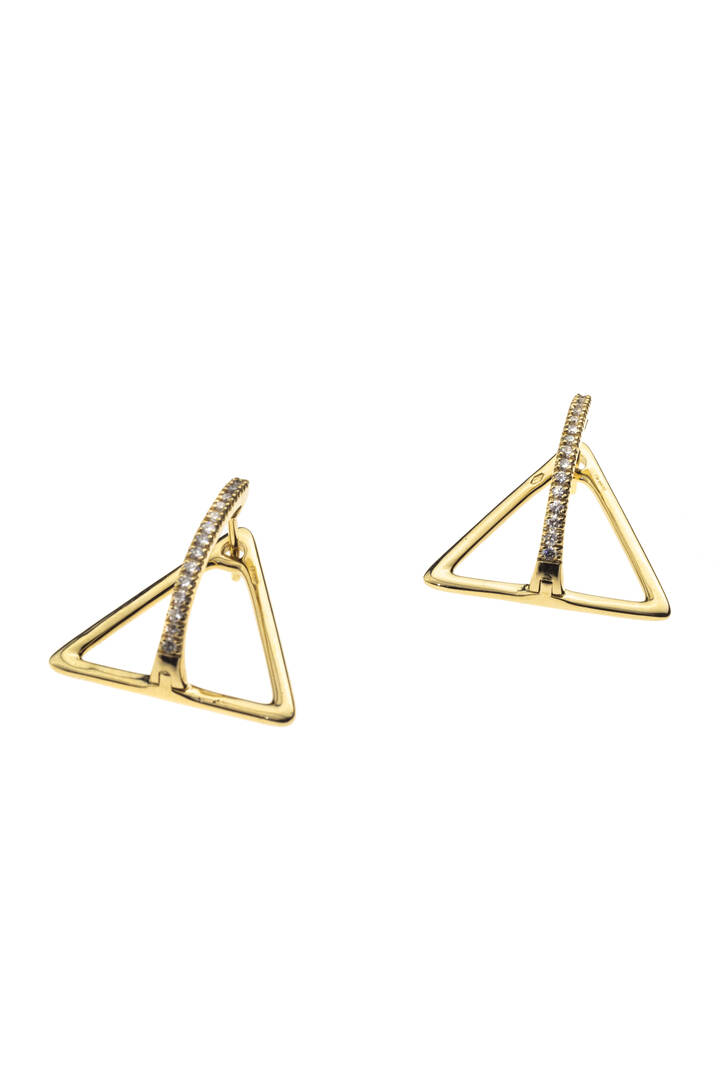 in oro giallo, di forma triangolare, con inserto centrale in diamanti taglio brillante per totali ct 0,29 ca