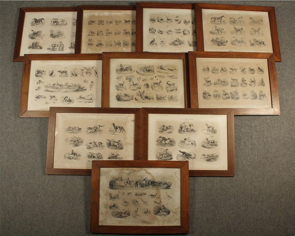 Firmato, datato. Dieci stampe su cartoncino raff. ''SERIE DI ANIMALI''. Inghilterra. Fine XIX secolo. In cornice. Difetti. Mis. Lung. cm. 48 Alt. cm. 37 ca.