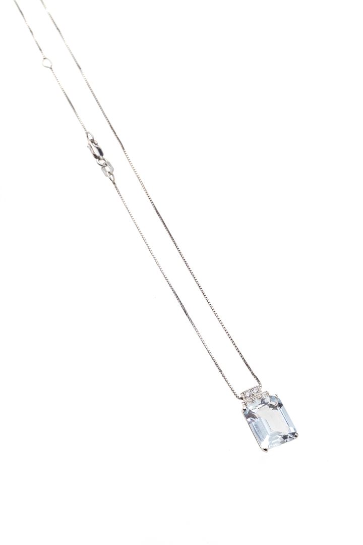 in oro bianco con acquamarina taglio ottagonale a gradini sormontata da diamanti taglio brillante per totali ct 0,07 ca