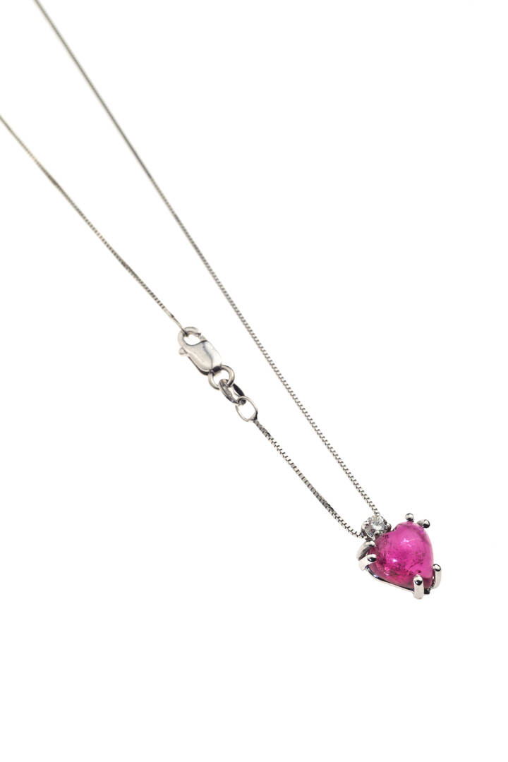 in oro bianco, con tormalina taglio a cuore cabochon e diamantino taglio brillante