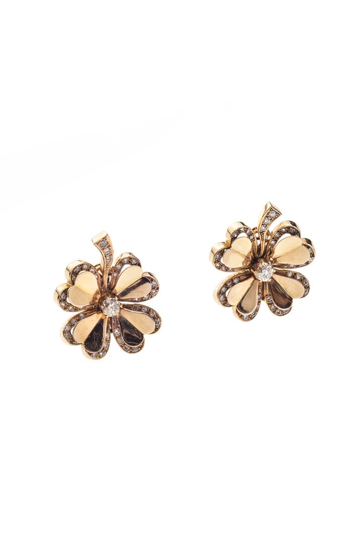in oro rosa, a clip, a forma di quadrifogli; diamanti taglio brillante, vecchio taglio e 8/8 a decoro per totali ct 1,0 ca