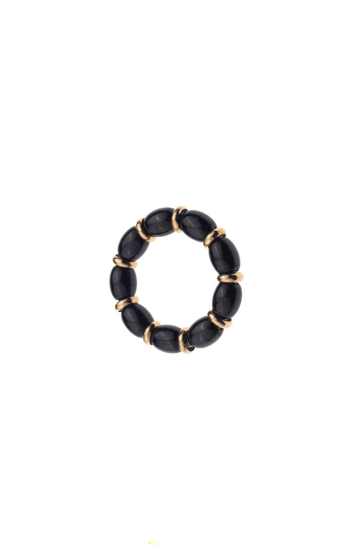 composto da barilotti di ceramica nera, montati su molla metallica ed alternati a dischi in oro rosa