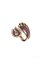 in oro rosa 9 Kt, modello contrarié, con volute trattenenti rosette di diamanti per totali ct 0,25 ca e rubini per totali ct 0,40 ca
