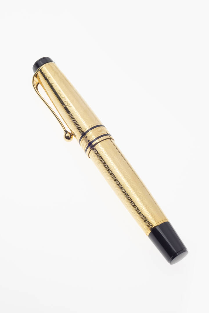 Stilografica "Aurora", serie limitata "Colombo 1492-1992", es. 0945, realizzata in occasione della celebrazione dei 500 anni dalla scoperta dell'America. Corpo e finiture in oro giallo lavorati