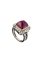 in oro bianco, sommità quadrata con al centro un rubino trattato taglio piramidale cabochon di ct 6,0 ca e contorno di diamanti taglio brillante per totali ct 0,80 ca