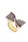 Anello in oro rosa e bianco bassa caratura, firmato "Amadori", a forma di fiocco con rosette di diamanti per totali ct 0,85 ca e rubini taglio carré per totali ct 1,0 ca